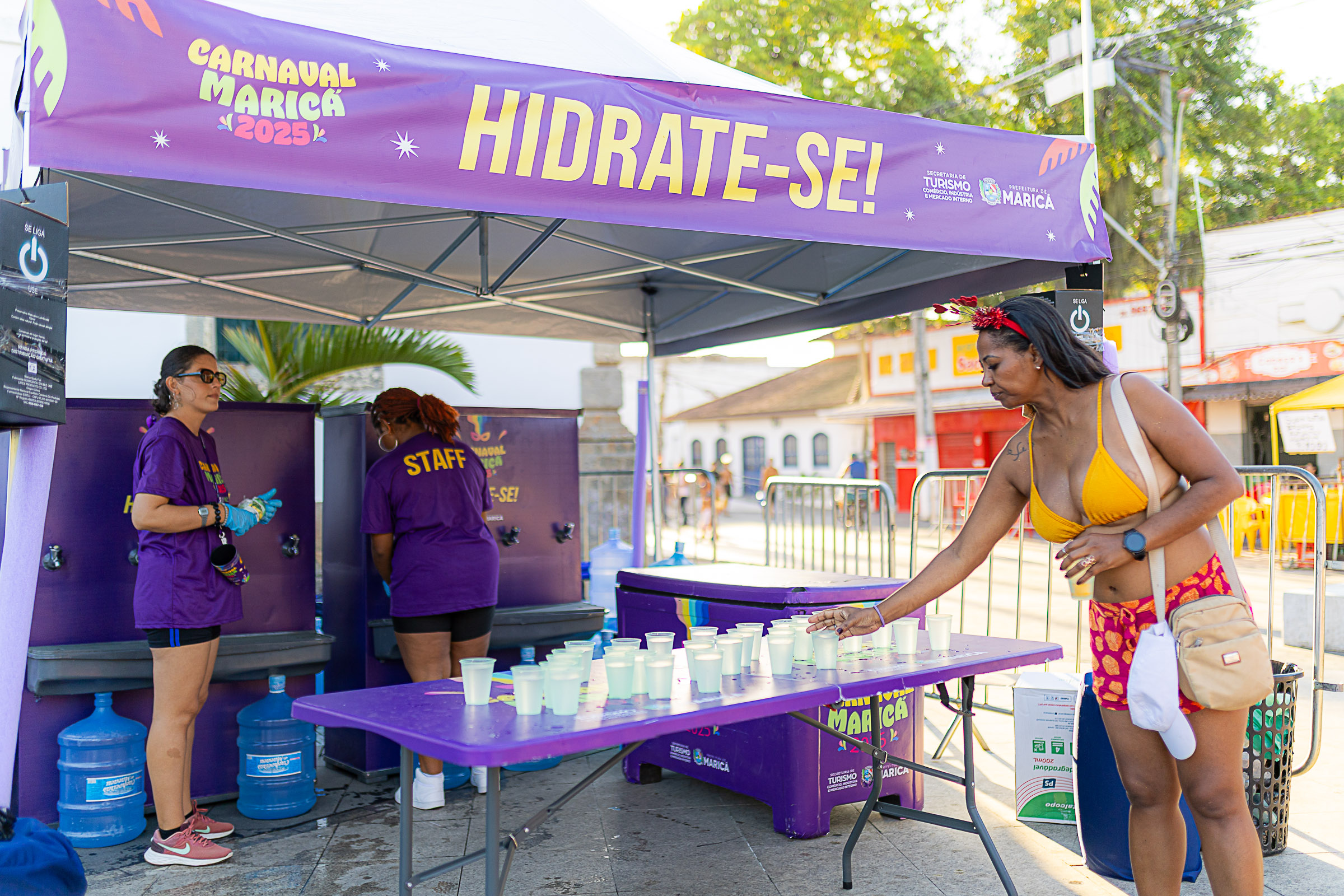 O Carnaval Maricá 2025 entrou no embalo do Oscar, cerimônia de entrega da estatueta para os melhores do cinema mundial. Neste domingo (02/03), os foliões que curtiram os blocos de rua e os shows no palco Centro aproveitaram os pontos de ativação da Prefeitura de Maricá, com direito a registro de imagens na tenda com câmera 360º, foto em backdrop temático que simula o futuro teleférico de Inoã e distribuição de água mineral gelada na tenda de hidratação. A estrutura está montada na Praça Orlando de Barros Pimentel e funciona no Carnaval das 15h às 23h.