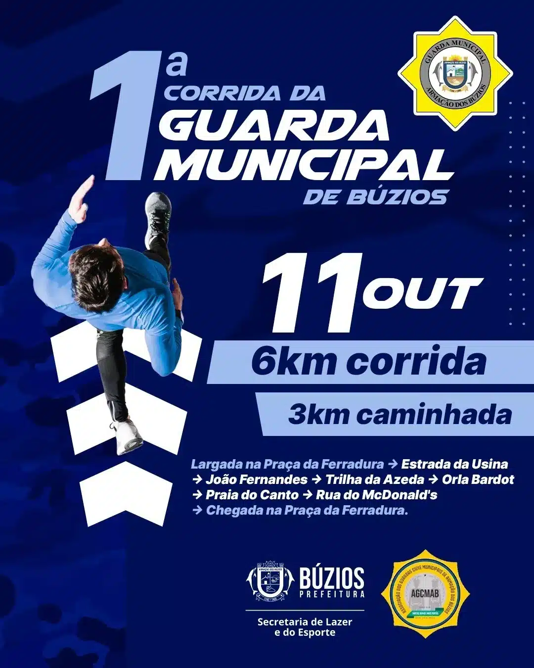 A Prefeitura de Búzios, por meio da Secretaria do Lazer e de Esportes, em parceria com a Associação dos Guardas Civis Municipais de Armação dos Búzios, realizará neste sábado (11) a 1ª Corrida da Guarda Civil Municipal da região.