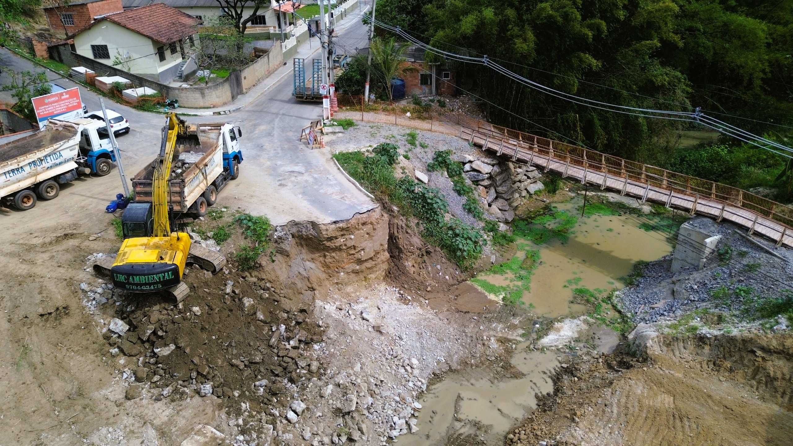 Além da intervenção no Rio Ubatiba, a Prefeitura também realiza a obra da ponte sobre o Rio Sapucaia, cuja estrutura principal já está concluída. A via permanece interditada temporariamente até a instalação da iluminação pública e a finalização dos demais serviços previstos na região.