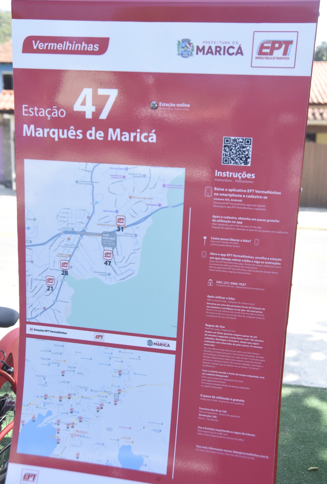 A Prefeitura de Maricá, por meio da Empresa Pública de Transportes (EPT), inaugurou nesta quarta-feira (1º/10) mais uma estação das Vermelhinhas, sistema gratuito de bicicletas compartilhadas. O novo ponto está localizado na Rua Marquês de Maricá, próximo à Escola Municipal Alfredo Nicolau da Silva Junior, ampliando as opções de deslocamento sustentável na região.