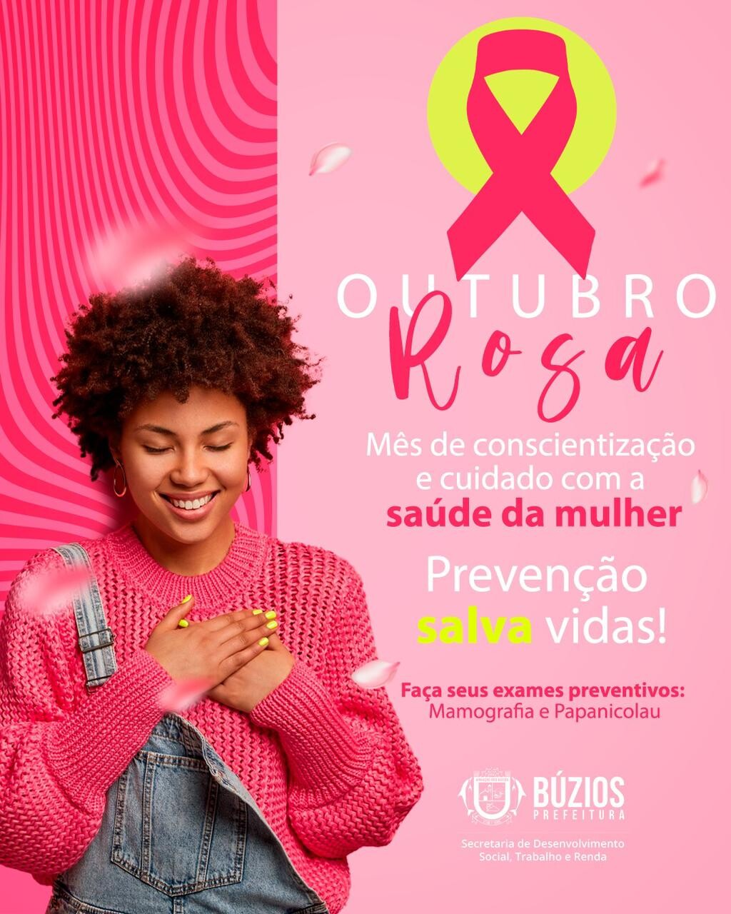A Secretaria de Desenvolvimento Social, Trabalho e Renda de Búzios aderiu à campanha Outubro Rosa, movimento internacional de conscientização sobre o câncer de mama e do colo do útero. A ação busca alertar a população sobre a importância da prevenção e do diagnóstico precoce, que aumentam as chances de cura e podem salvar vidas.